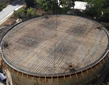6 Reinforced concrete water storage tanks: 1* 1000 m*, 1* 1500 m* and 4* 2000 m3. (Total of 6500 m3 of reinforced concrete works)